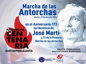Los trabajadores de las Comunicaciones en la capital estamos convocados a participar en la Marcha de las Antorchas, el próximo martes 27 de enero, desde la Escalinata Universitaria hasta la Fragua Martiana, en homenaje al Aniversario 173 del Natalicio de José Martí y al Aniversario 73 de la Primera Marcha de las Antorchas.